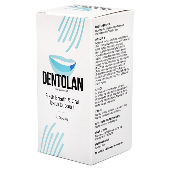 Dentolan er et innovativt produkt som gir omfattende støtte ved halitose. Glem tyggegummi! Takket være Dentolan-kapsler vil du få frisk pust naturlig og føle deg mer selvsikker i nær kontakt med andre.